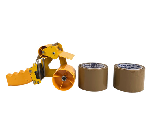 SMART PACK Hand Tape Dispenser (3 inch) with 2 BROWN Tap Combo Pack