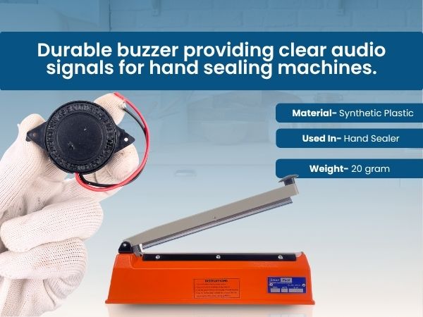 The Buzzer for Hand Sealing Machine provides clear and reliable audio alerts to signal operational status. Made from quality materials, it ensures durability, ease of use, and requires minimal maintenance, making it an essential component for efficient sealing operations.