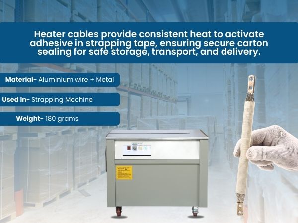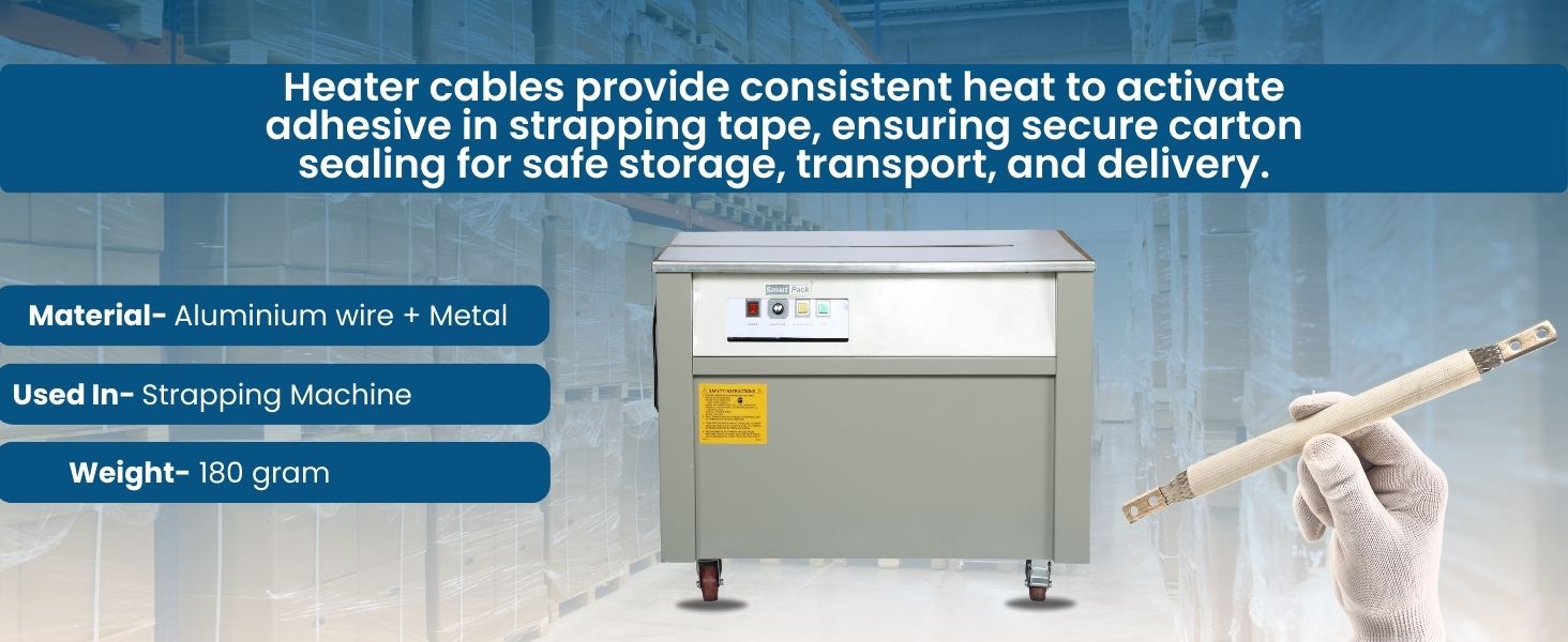 Ensure strong and efficient strapping with this Heater Cable, designed for carton box strapping machines. Ideal for packaging, warehousing, and logistics use, it delivers consistent heat to activate strapping tape adhesives, ensuring secure seals. Built from durable, heat-resistant materials, it performs reliably under continuous use. Each pack includes 2 cables—perfect for routine replacements or backup.
